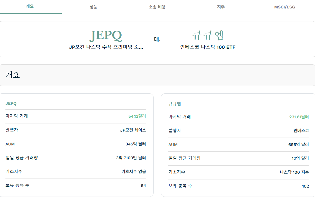 제일 유명한 JEPQ와 QQQM 을 비교해 보겠습니다.